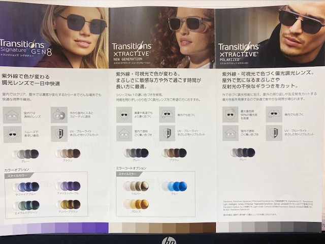 紫外線・可視光線で色づく調光レンズのご案内は以前させて頂きましたが、