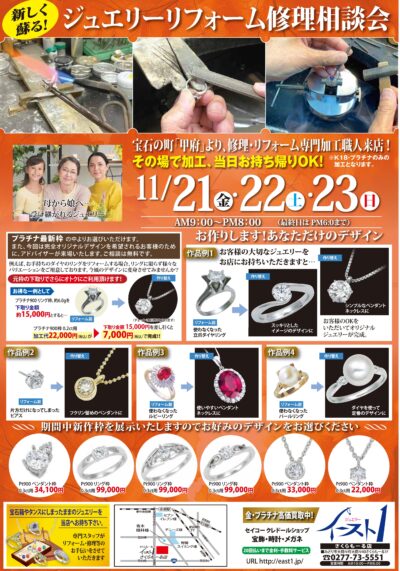 ジュエリーリフォーム相談会実施のお知らせ(11/21~23)