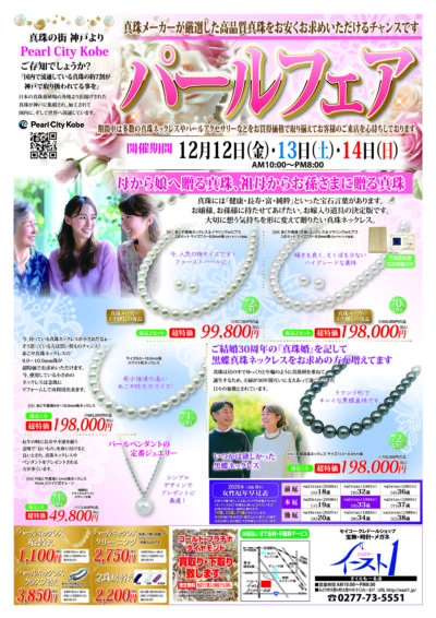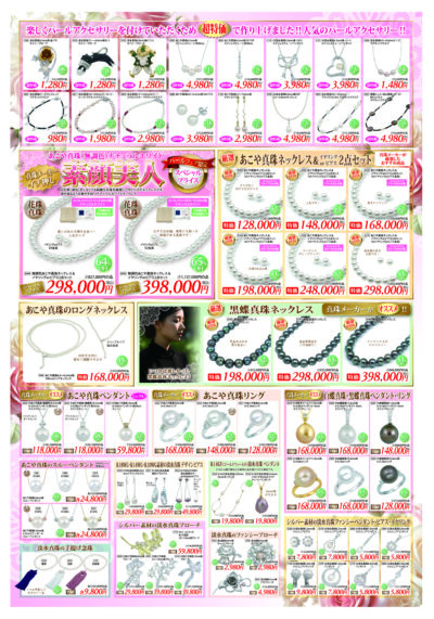 期間中は多数の真珠ネックレスやパールアクセサリーなどをお買い得価格で